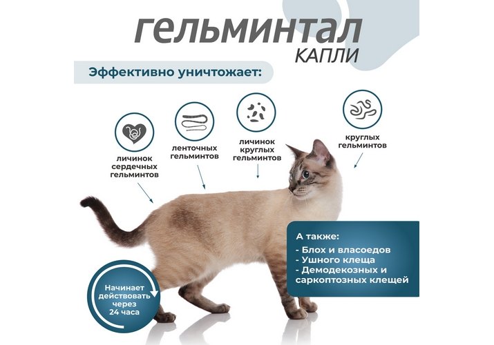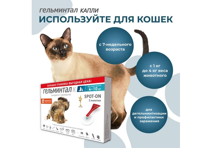 Гельминтал К Spot-on Капли от Гельминтов на холку для кошек весом до 4 кг 1 х 3 шт