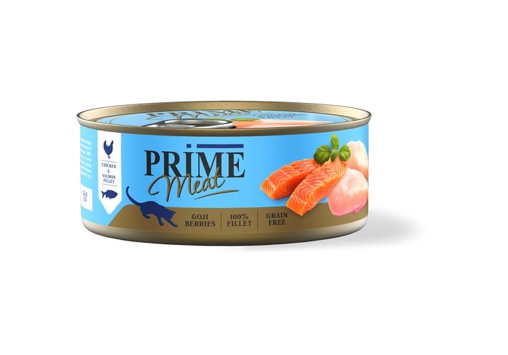 Prime Meat Chicken & Salmon in jelly Консервы Прайм Мит для взрослых кошек Курица с лососем в желе (цена за упаковку) 100г х 12шт