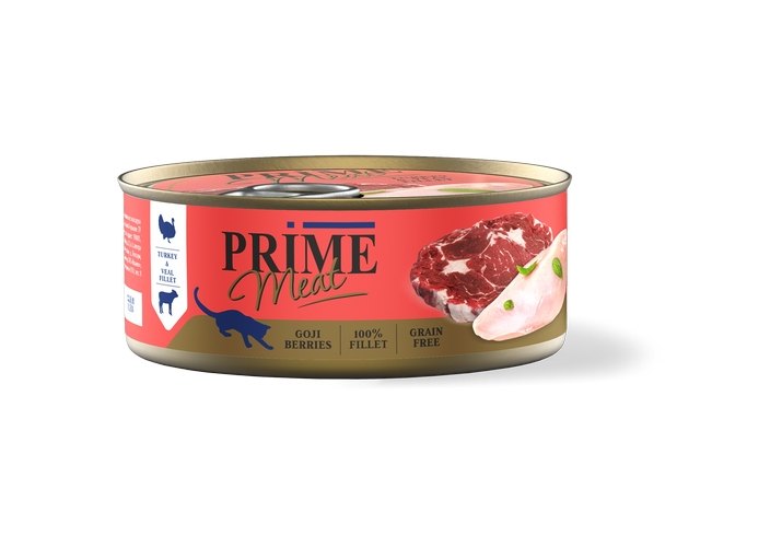 Prime Meat Turkey & Veal in jelly Консервы Прайм Мит для взрослых кошек Индейка с телятиной в желе (цена за упаковку) 100г х 12шт