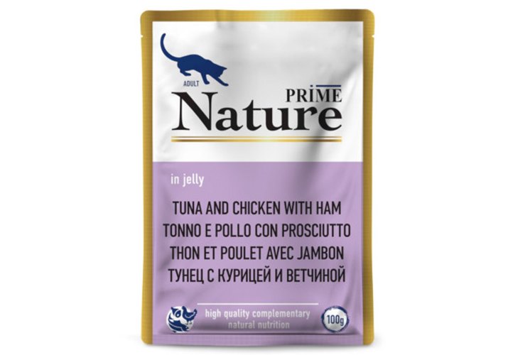 Prime Nature Паучи Прайм Нейча для взрослых кошек Тунец с курицей и ветчиной в желе (цена за упаковку) 100г х 12шт