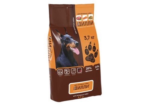 Дилли Сухой корм для Активных собак с Курицей и индейкой 3,7 кг