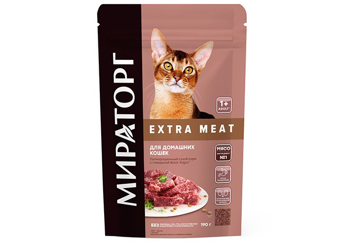 Мираторг Extra Meat Сухой корм для Домашних кошек старше 1 года с Говядиной Black Angus 190 г