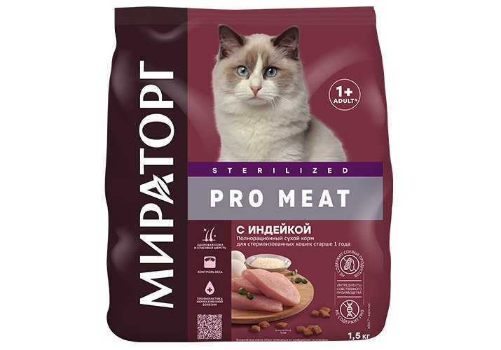 Мираторг Pro Meat Сухой корм для Стерилизованных кошек старше 1 года с Индейкой 1,5 кг