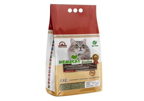 Homecat Ecoline Комкующийся наполнитель Хоумкэт для кошачьего туалета Древесный 18 л