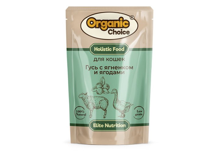 Organic Сhoice Влажный корм Паучи Органик Чойс для кошек Гусь с ягненком и ягодами в соусе (цена за упаковку) 85г х 14шт