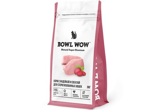 BOWL WOW Сухой корм Боул Вау для Стерилизованных кошек с Индейкой и свеклой 8 кг