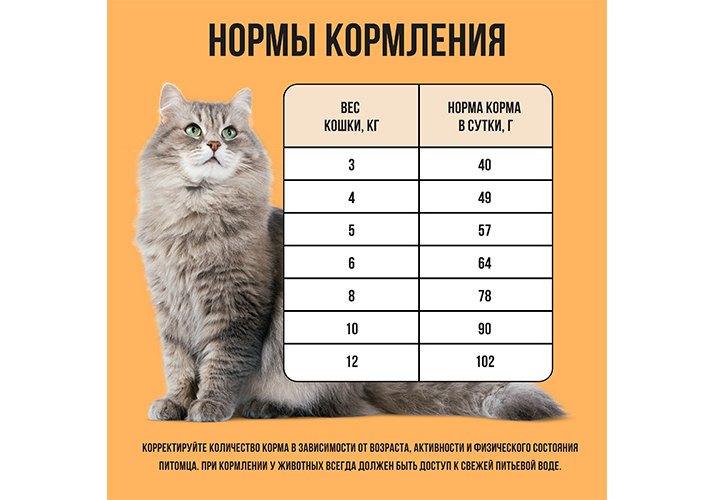 Корректируйте количество корма в зависимости от возраста, активности и физического состояния питомца.