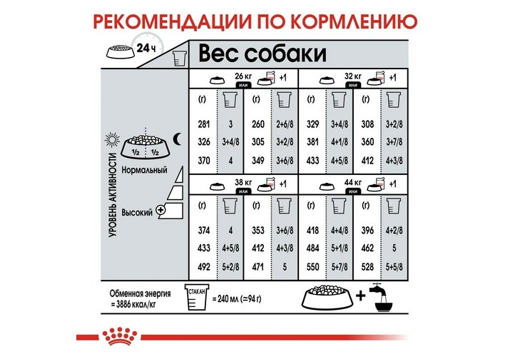 См. таблицу. Корм готов к употреблению.