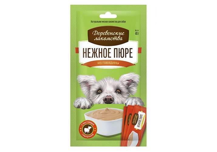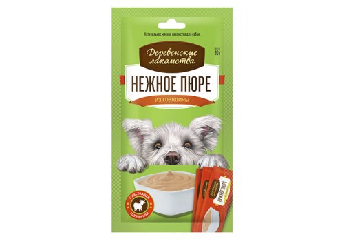 Деревенские лакомства Нежное пюре для собак из Говядины 10г х 4шт