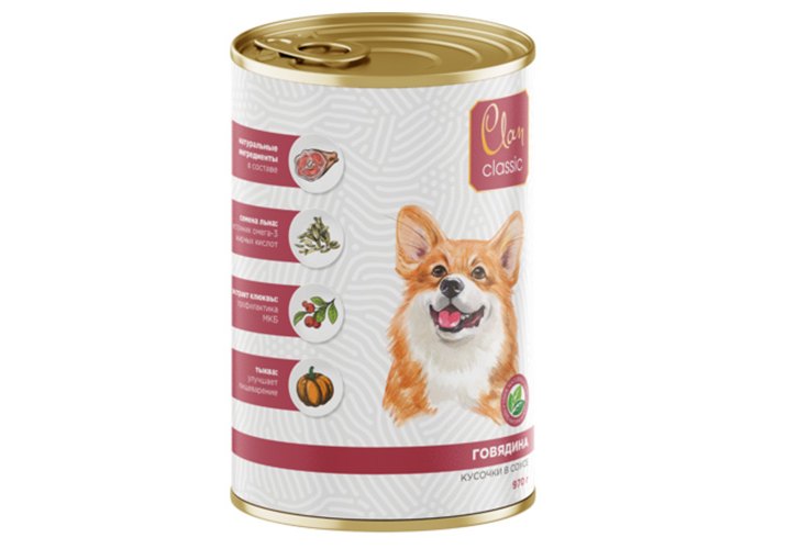 Clan Classic Консервы Клан для собак Кусочки в соусе с Говядиной (цена за упаковку) 970г х 6шт