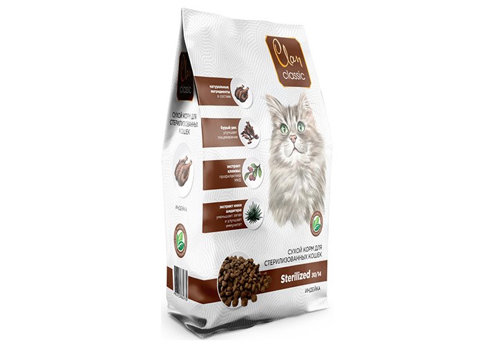 Clan Classic Sterilized 30-14 Сухой корм Клан для Стерилизованных кошек Индейка 3 кг