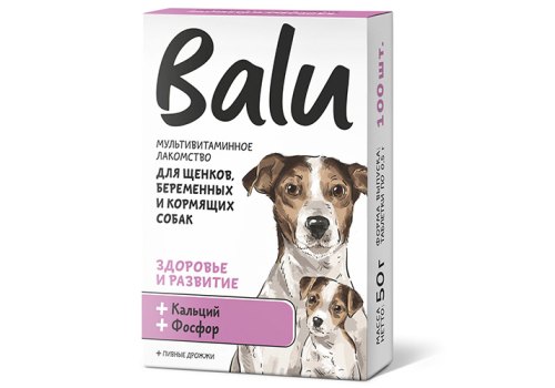 Balu Лакомство мультивитаминное Балу для Щенков, беременных и кормящих собак Здоровье и развитие кальций и фосфор 100 таб