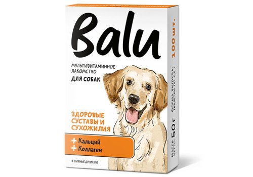 Balu Лакомство мультивитаминное Балу для собак Здоровые суставы и сухожилия кальций и коллаген 100 таб