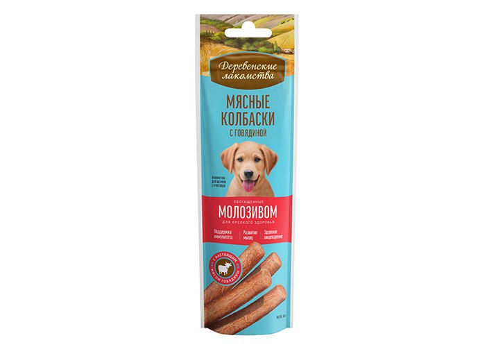 Деревенские лакомства Мясные колбаски с Говядиной обогащенные молозивом для Щенков 45 г