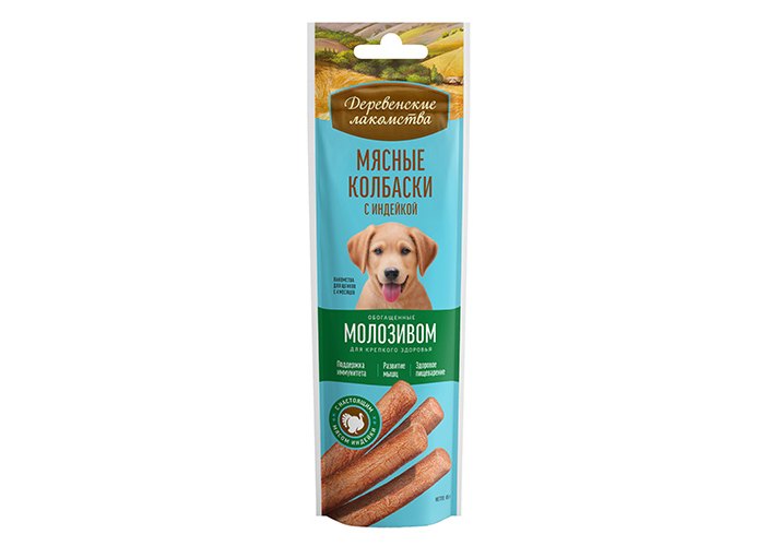Деревенские лакомства Мясные колбаски с Индейкой обогащенные молозивом для Щенков 45 г