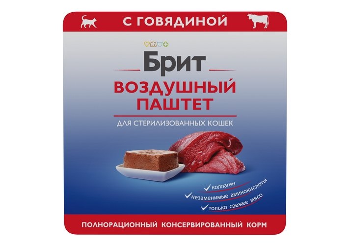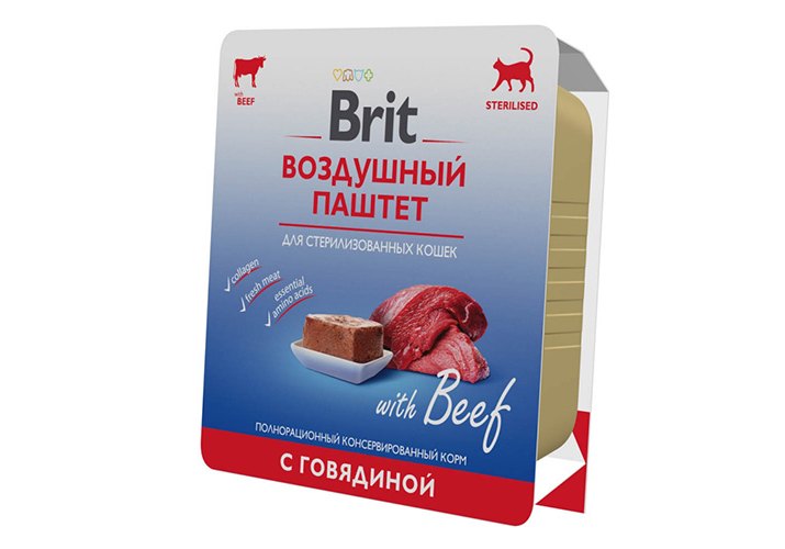 Brit Sterilised Воздушный паштет Влажный корм (Ламистеры) Брит для Cтерилизованных кошек с Говядиной (цена за упаковку) 100г х 14шт