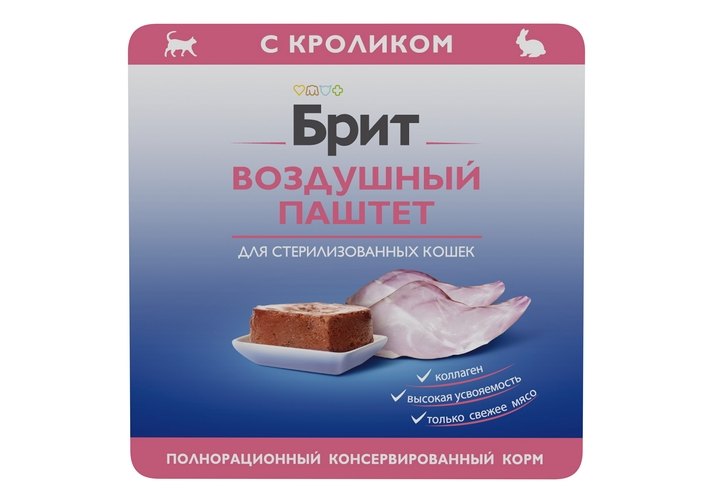 Brit Sterilised Воздушный паштет Влажный корм (Ламистеры) Брит для Cтерилизованных кошек с Кроликом (цена за упаковку) 100г х 14шт