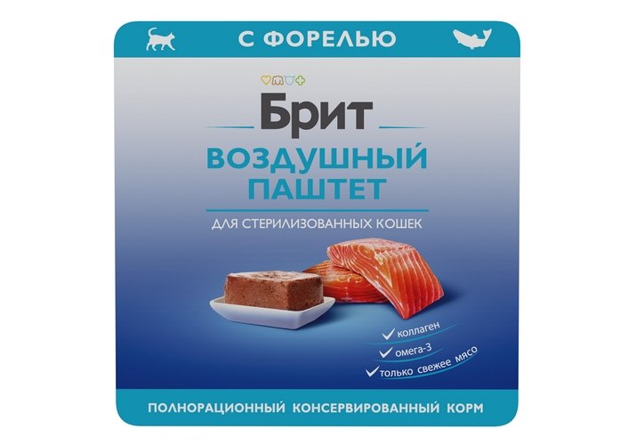 Brit Sterilised Воздушный паштет Влажный корм (Ламистеры) Брит для Cтерилизованных кошек с Форелью (цена за упаковку) 100г х 14шт