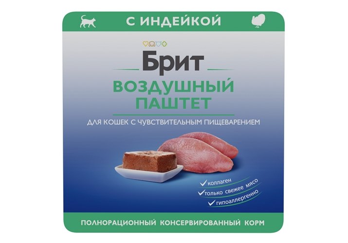 Brit Sensitive Воздушный паштет Влажный корм (Ламистеры) Брит для кошек с Чувствительным пищеварением с Индейкой (цена за упаковку) 100г х 14шт