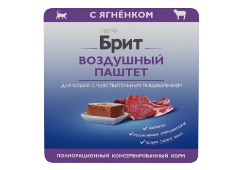 Brit Sensitive Воздушный паштет Влажный корм (Ламистеры) Брит для кошек с Чувствительным пищеварением с Ягненком (цена за упаковку) 100г х 14шт