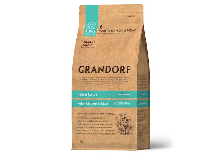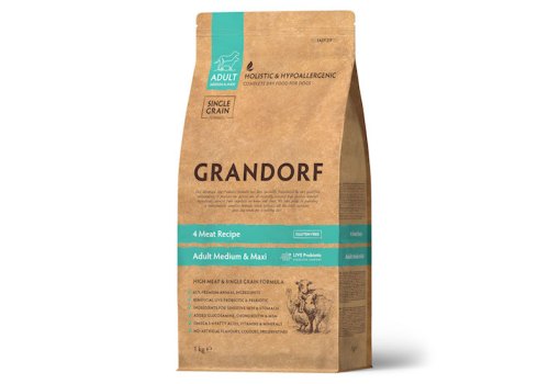 Grandorf Holistic & Hypoallergenic Adult Medium Maxi Probiotic 4 meat Сухой корм Грандорф Низкозерновой с Живыми Пробиотиками для собак Средних и Крупных пород 4 вида Мяса 1 кг