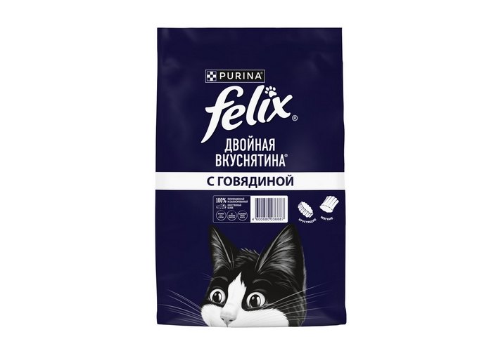 FELIX® Двойная Вкуснятина® - первый сухой корм, созданный под брендом FELIX® для находчивого кота, который знает толк во вкусной еде.