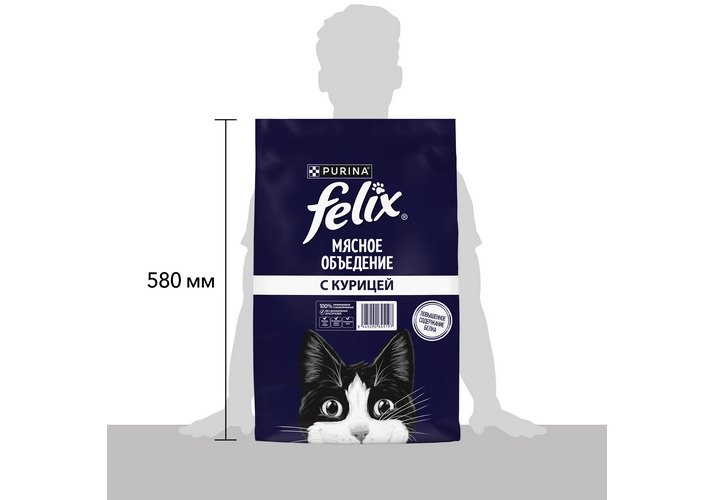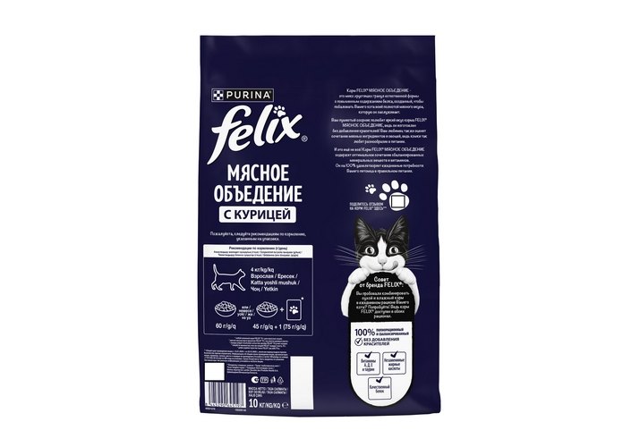 FELIX МЯСНОЕ ОБЪЕДЕНИЕ Сухой корм Пурина Феликс Мясное объедение для взрослых кошек с курицей 10 кг