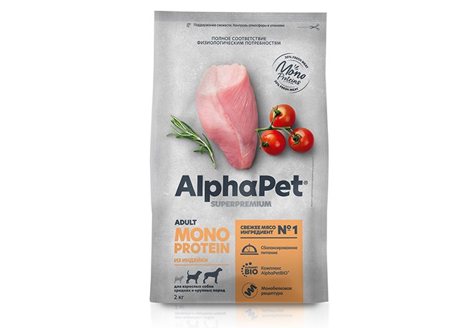 AlphaPet Superpremium Monoprotein Сухой корм АльфаПет для собак Средних и Крупных пород Индейка 2 кг