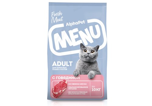 AlphaPet Menu Сухой корм АльфаПет для взрослых кошек Говядина 10 кг