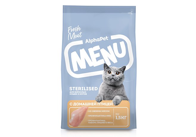 AlphaPet Menu Сухой корм АльфаПет для взрослых Стерилизованных кошек Домашняя птица 1,5 кг