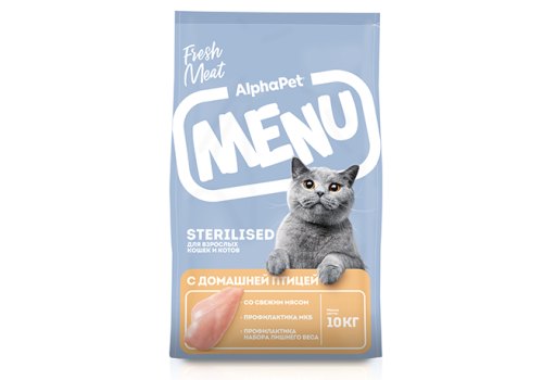 AlphaPet Menu Сухой корм АльфаПет для взрослых Стерилизованных кошек Домашняя птица 10 кг