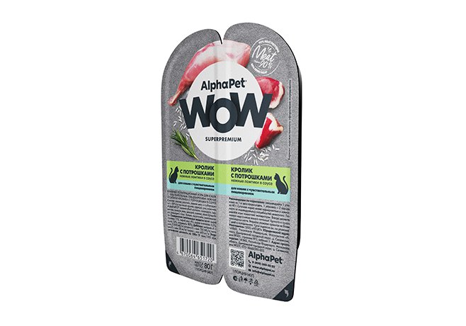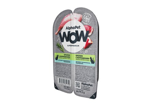 AlphaPet Wow Superpremium Влажный корм Ламистеры АльфаПет для кошек с Чувствительным пищеварением Кролик с потрошками (цена за упаковку) 80г х 15шт