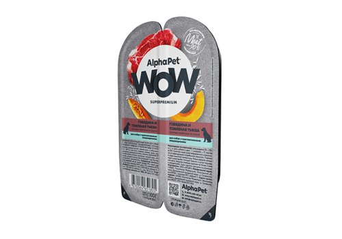 AlphaPet Wow Superpremium Влажный корм Ламистеры АльфаПет для собак с Чувствительным пищеварением Говядина и томленая тыква (цена за упаковку) 100г х 15шт