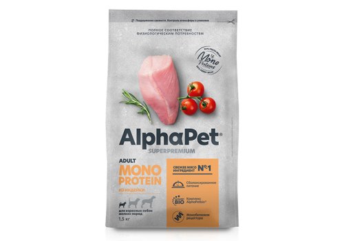 AlphaPet Superpremium Monoprotein Сухой корм АльфаПет для собак Мелких пород Индейка 1,5 кг