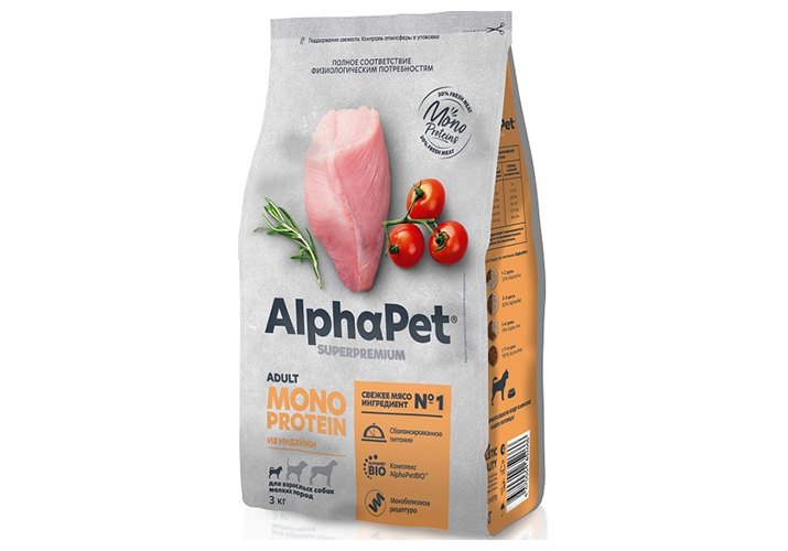 AlphaPet Superpremium Monoprotein Сухой корм АльфаПет для собак Мелких пород Индейка 3 кг