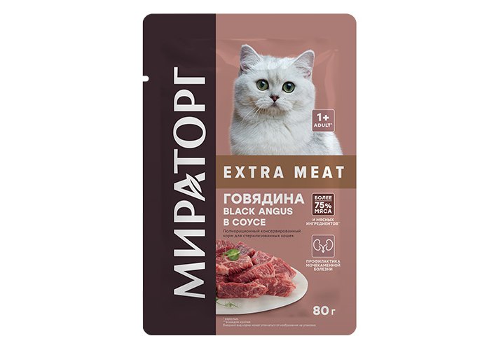 Мираторг Extra Meat Влажный корм Паучи для Стерилизованных кошек Говядина Black Angus в соусе (цена за упаковку) 80г х 24шт