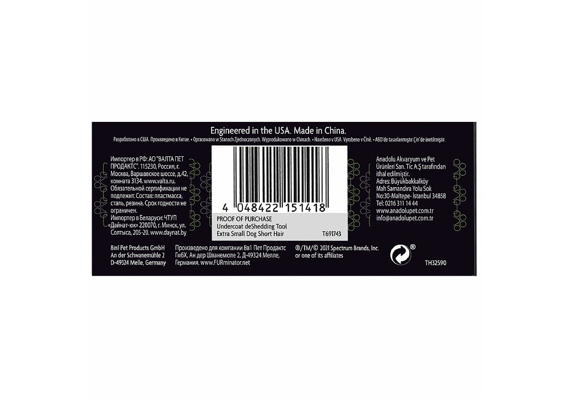 FURminator XS Extra Small Dog Short Hair Фурминатор для собак Миниатюрных пород с Короткой шерстью 1 шт