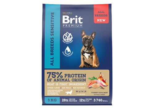 Brit Premium All Breeds Sensitive Turkey & Salmon Сухой корм Брит Премиум для взрослых собак всех пород с Чувствительным пищеварением Индейка Лосось 3 кг