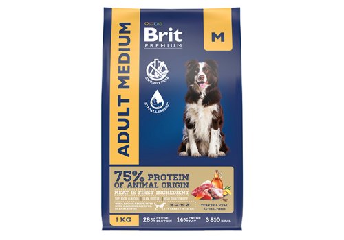 Brit Premium Adult Medium Сухой корм Брит Премиум для взрослых собак Средних пород Индейка Телятина 1 кг