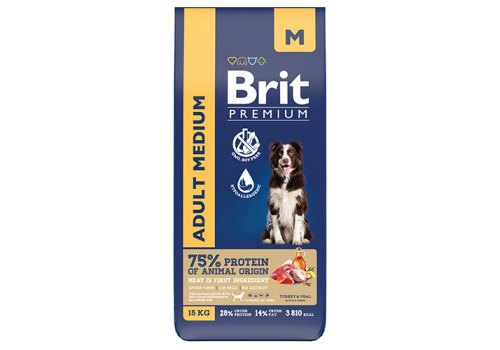 Brit Premium Adult Medium Сухой корм Брит Премиум для взрослых собак Средних пород Индейка Телятина 15 кг