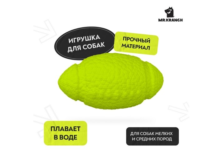 Mr.Kranch Игрушка Мистер Кранч для собак Мяч-регби неоновая желтый 14 см