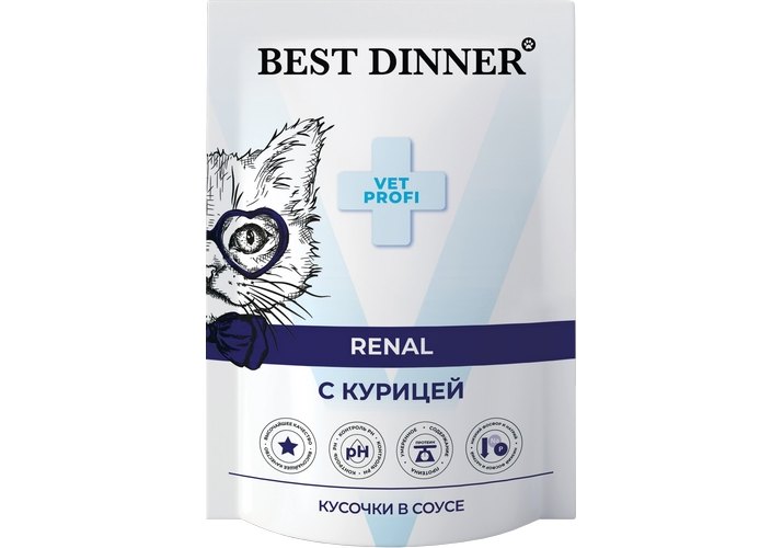 Best Dinner Exclusive Vet Profi Renal Паучи Бест Диннер для кошек Курица кусочки в соусе (цена за упаковку) 85г х 24шт