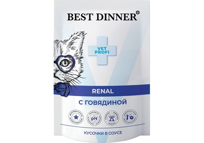 Best Dinner Exclusive Vet Profi Renal Паучи Бест Диннер для кошек Говядина кусочки в соусе (цена за упаковку) 85г х 24шт