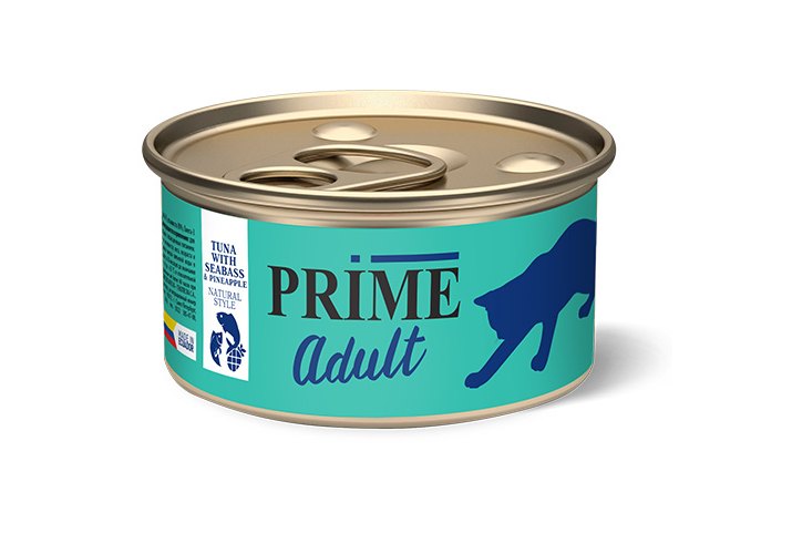 Prime Adult Tuna with Seabass & Pineapple natural style Консервы для взрослых кошек Тунец с сибасом и ананасом в собственном соку (цена за упаковку) 85г х 12шт