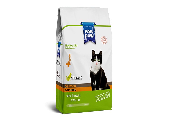 Pawpaw Sterilised Food with Salmon Сухой корм ПавПав для Стерилизованных кошек с Лососем 1,5 кг
