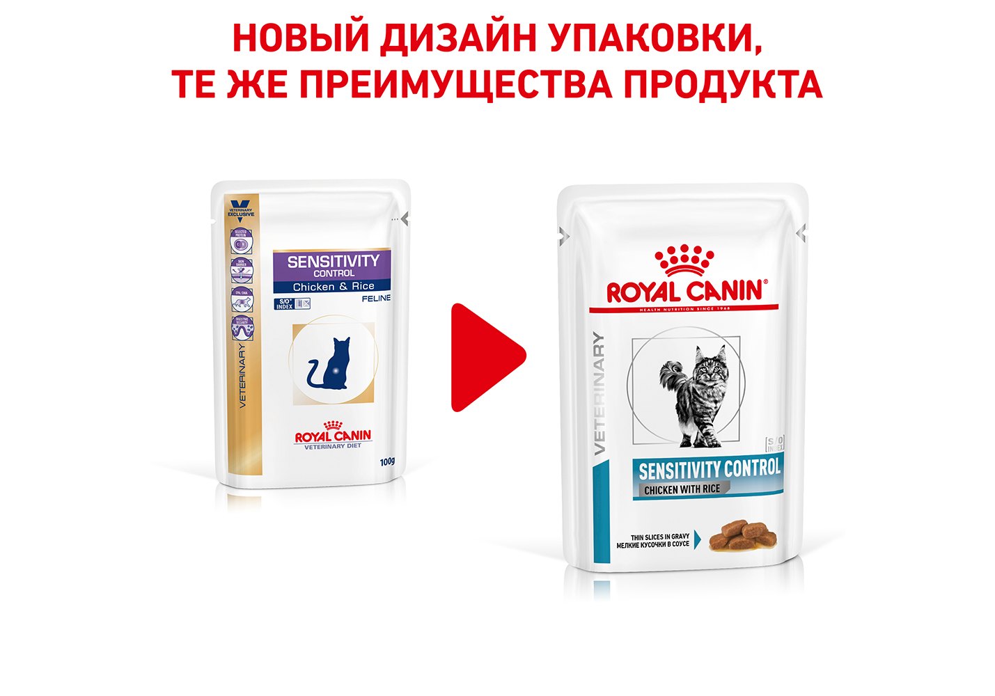Royal Canin Sensitivity Control Chicken & Rice Ветеринарный влажный корм (Консервы-Паучи) Роял Канин Сенситивити Контрол для кошек Пищевая аллергия и непереносимость с Курицей и рисом (цена за упаковку) 85г х 28шт