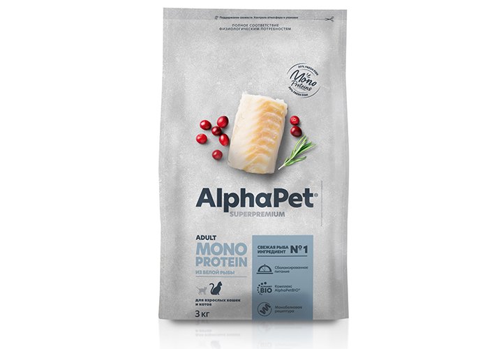AlphaPet Superpremium Monoprotein Сухой корм АльфаПет для взрослых кошек Белая рыба 3 кг