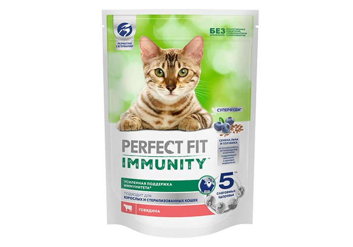 Perfect Fit Immunity Сухой корм Перфект Фит для кошек для Поддержания иммунитета с Говядиной, семенами льна и голубикой 580 г