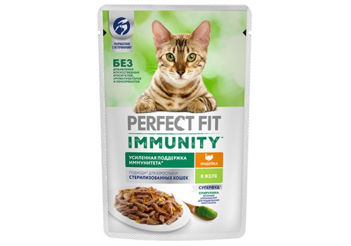 Perfect Fit Immunity Паучи Перфект Фит для взрослых кошек для Поддержания иммунитета со спирулиной и Индейкой в желе (цена за упаковку) 75г х 28шт