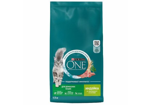 Корм Purina ONE® с индейкой для взрослых домашних кошек в выгодной* упаковке 9,75кг — это: